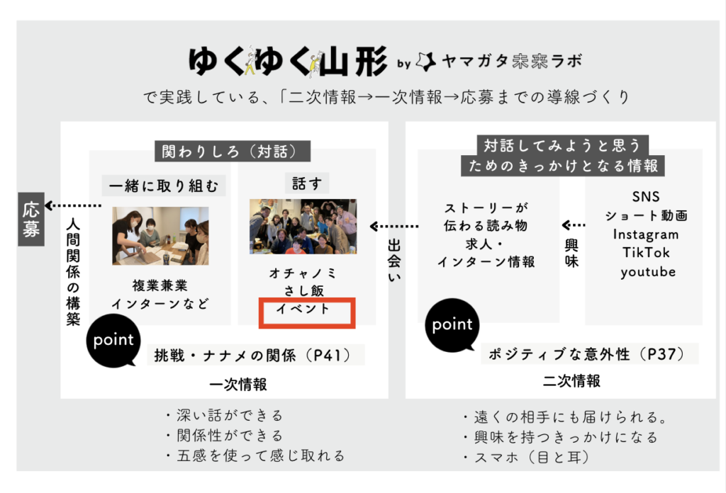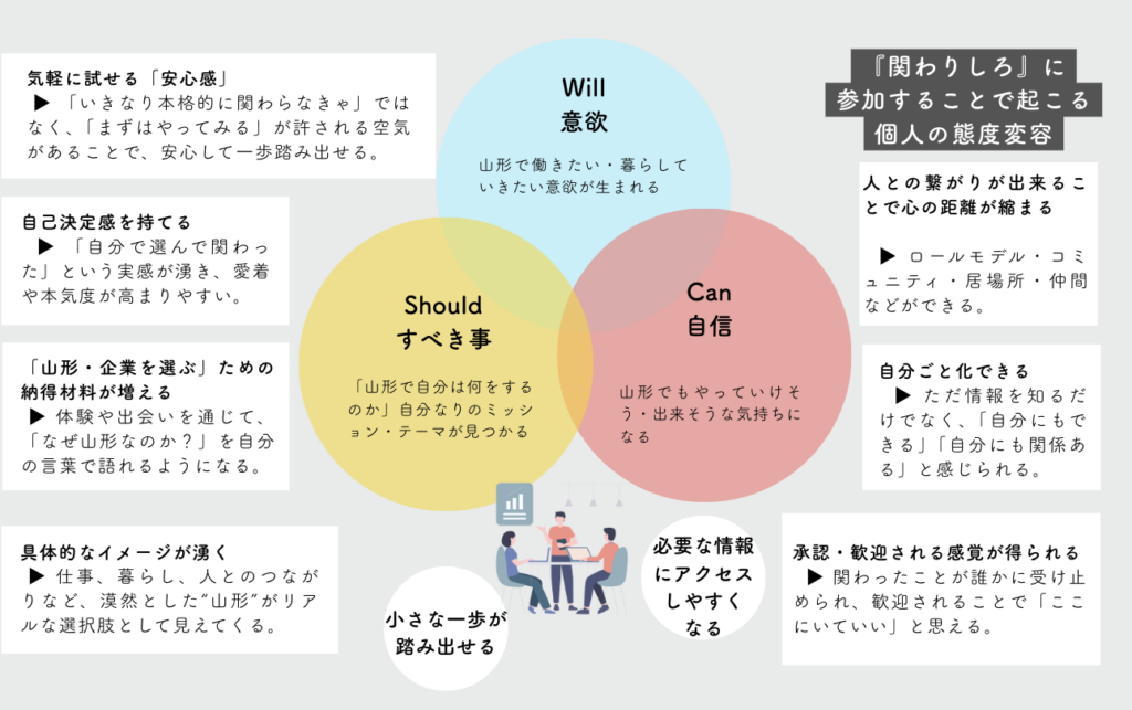 「自分の目や耳で得た一次情報が得られる対話の機会(関わりしろ)」が「山形で働くこと」の意欲・覚悟を育みます。