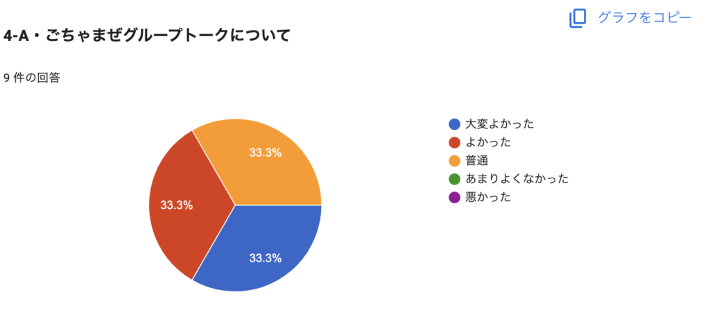 「会話のきっかけとしてわかりやすいものだった。(これに沿って何かをしたかというとそうでもなかったが、それはそれでよいと思う)」