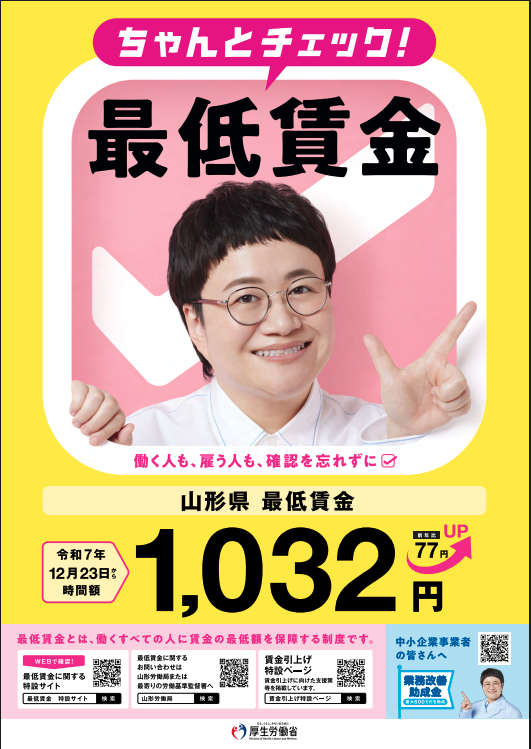 【問合せ先】山形労働局労働基準部賃金室(TEL 023-624-8224) 又は最寄りの労働基準監督署